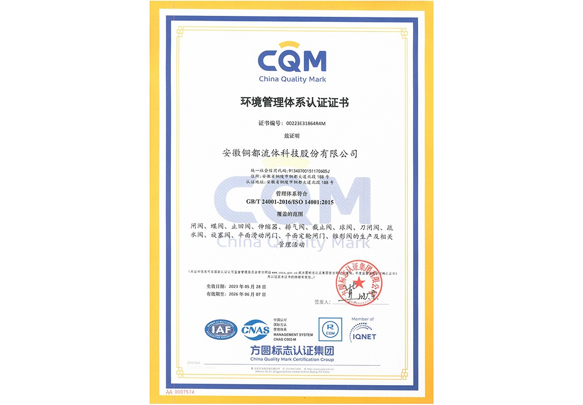 ISO14001環境管理體系認證證書