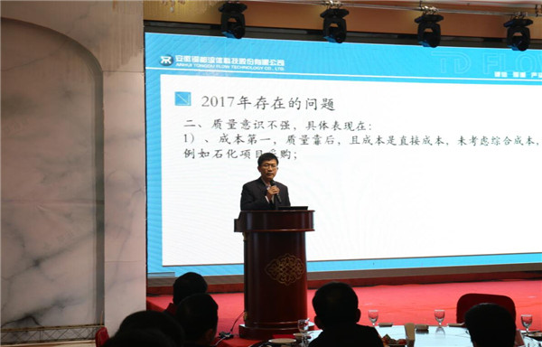 年會上,公司副總經理楊凌杰作2017年度營銷工作報告, 公司總經理趙小虎對2017年度工作作了全面總結,充分肯定了公司近三年來各項核心指標均實現兩位數增長的成績,指出了目前管理工作中存在的不足,提出了具體改進措施,并明確了2018年核心經營目標。公司董事長楊成結合行業及公司當前發展趨勢,從公司長遠發展、做大做強戰略高度,深刻分析了銅都流體面臨嚴峻的挑戰形勢,并指明企業的發展策略以及發展措施,并號召全體員工不忘初心,繼續發力,使銅都流體新年再上新臺階。
