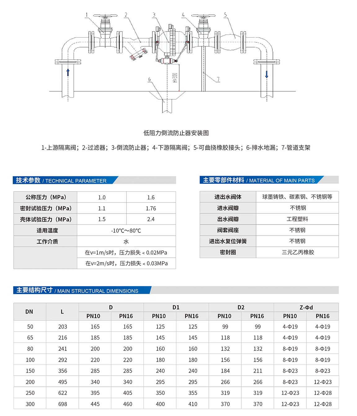 倒流防止器是由兩個相互獨立的止回閥和中間減壓腔內一個獨立的水力差動式泄水閥構成,三個內部閥門除共用閥體外,無任何機械上的聯系,可靠性較高, 是一種具有限定管道中的壓力水只能單向流動的新型水力控制組合裝置,具有防止倒流污染和虹吸倒流污染的功能,此倒流防止器為市政管網的供水安全提供了合理的解決方案,倒流防止器可廣泛應用于城鎮自來水管網、各種水系統及具有回流污染的場所。例如用于高層建筑的供水系統、生活飲用水與中水系統、消防供水系統、空調制水系統、噴灌灑水系統、工業取用水系統、醫療供水系統等,也可用于無負壓設備的配套安裝,防止不潔凈的水回流到主水管的現象發生,保證生活飲用水的衛生與安全。